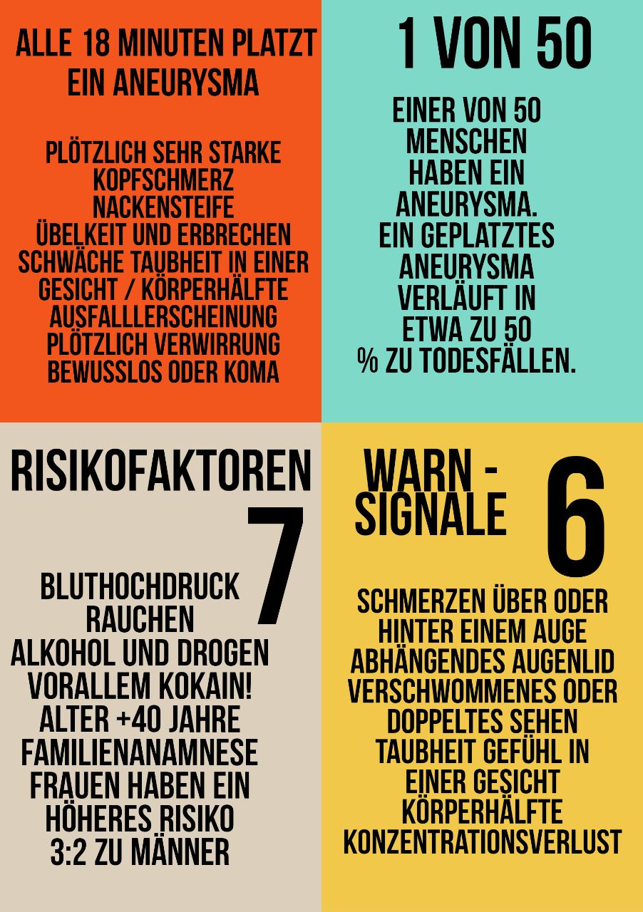 Aufklärung und Sichtbarkeit von Hirn-Aneurysmen und SchlaganfallUnterstützung und Prävention durch Informationen und Selbsthilfegruppen-Gemeinschaft und Austausch für Betroffene und ihre Angehörigen.